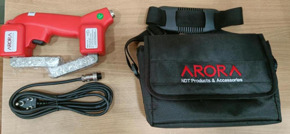 The AY-7A yoke is available in two variant 230-volt 50-Hz or 110-volt 60-Hz . It provides powerful AC magnetic field for detection of crack on surface during magnetic particle inspection. The AY-7A Yoke has adjustable leg from 65 to 260 mm (Center to center) making yoke ideal for different geometries. It is widely used with either dry or wet method, fluorescent or non- fluorescent magnetic powder, in the inspection of welds, forging, casting and in service applications.