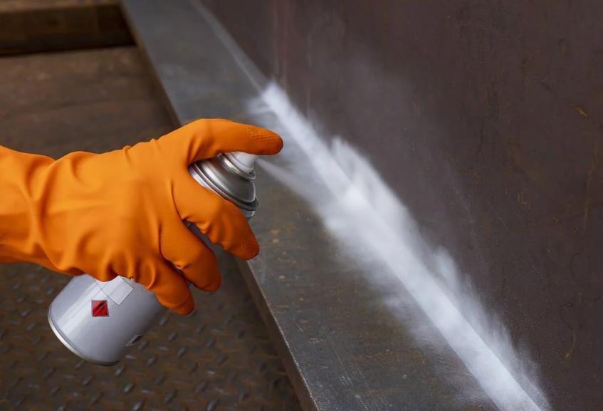 Dye penetrant testing (DPT) is a non-destructive inspection method used to detect surface flaws in materials. The process begins with surface cleaning to remove contaminants. A penetrant dye is then applied, allowed time to seep into any surface defects, and excess dye is removed. A developer is then applied, drawing the penetrant out of the flaws, making them visible against the background. The inspection can be conducted under UV light or with a contrasting colored dye, enhancing visibility. This method is effective for detecting cracks, porosity, and other defects in non-porous materials like metals, plastics, and ceramics. DPT is widely used in industries such as aerospace, automotive, and manufacturing for quality assurance purposes.