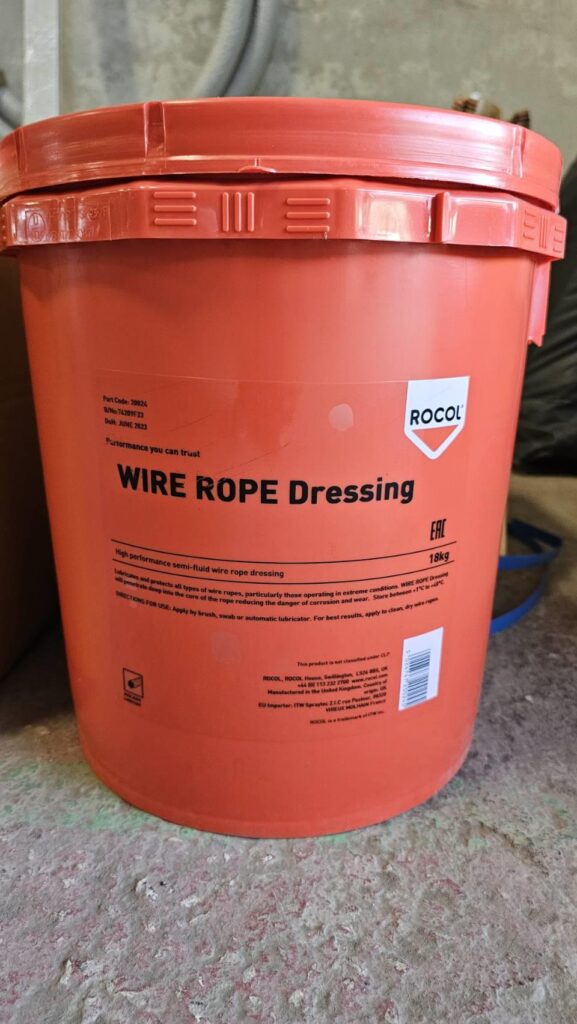 ROCOL 20024 ® Wire Rope Dressing is a semi-fluid grease based on highly refined mineral oil and an organically modified clay thickener. The unique blend of lubricating solids contained in ROCOL Wire Rope Dressing reduces the internal friction and wear often encountered in multi-strand wire ropes.
